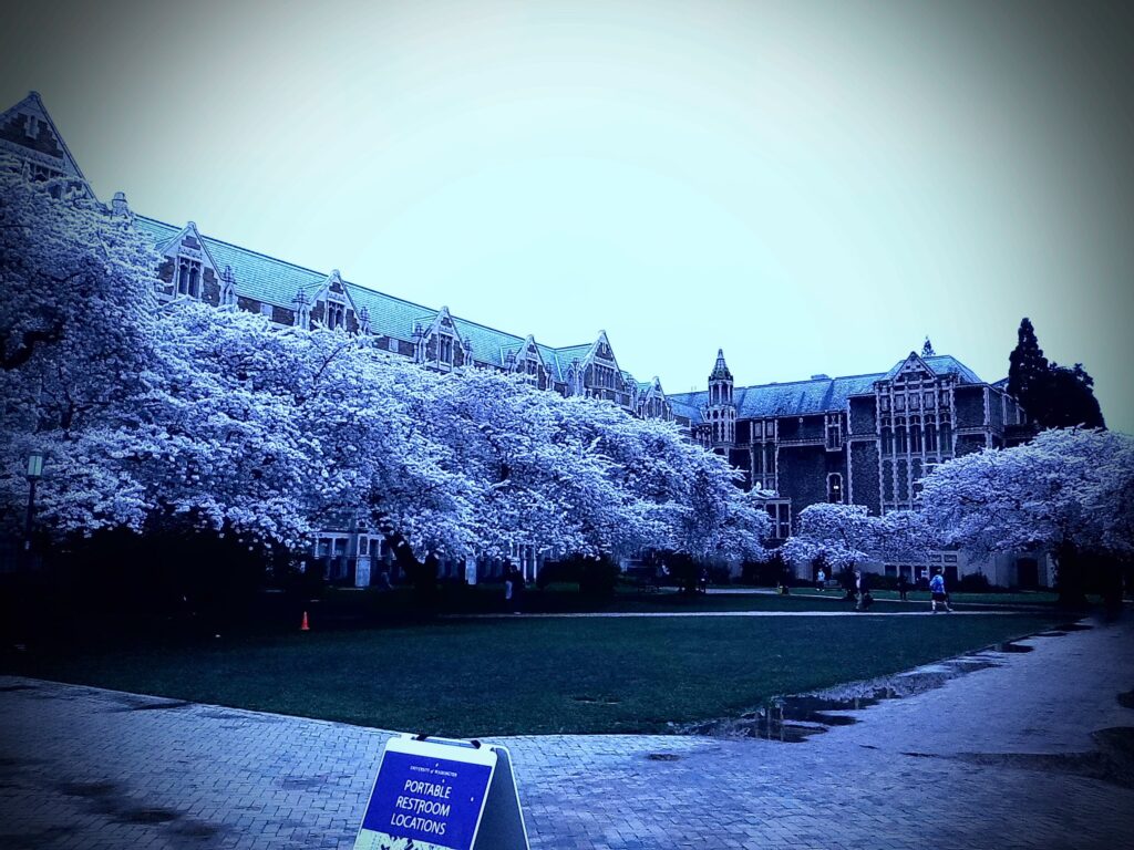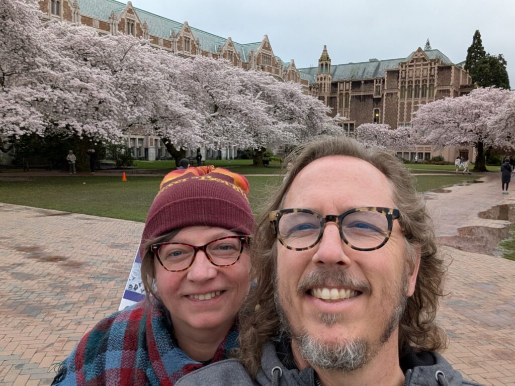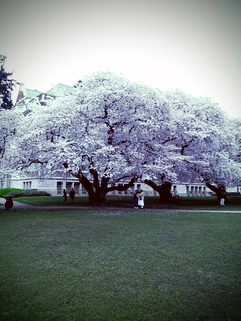 Wednesday was nice since we didn’t really have any plans. By the time I got up and ready, Patrick was up in Capitol Hill, so I got a ride up to where he was and we took the train to the UW campus to see the cherry blossoms, which were really beautiful. The campus itself looks like something out of Harry Potter. The architecture is ornate and stately, and the grounds truly impressive. Here’s a few photos, some of which were shot on my little toy camera: