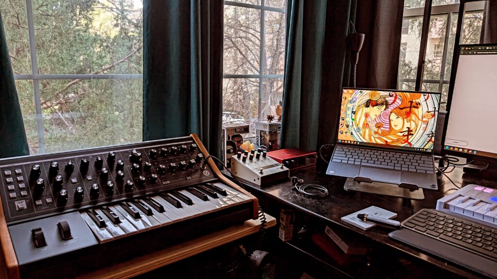 The other thing I am very excited for will be awaiting me on my return home – I caved and bought a Moog Subsequent 25 because it’s being discontinued and was $300 off the regular price. I’d been eyeing one for a couple years now, every time we went to Chicago Music Exchange when we’ve traveled there. Now, it will finally be mine! Also I’m banned from buying any more synthesizers for a while. But look how pretty she is: