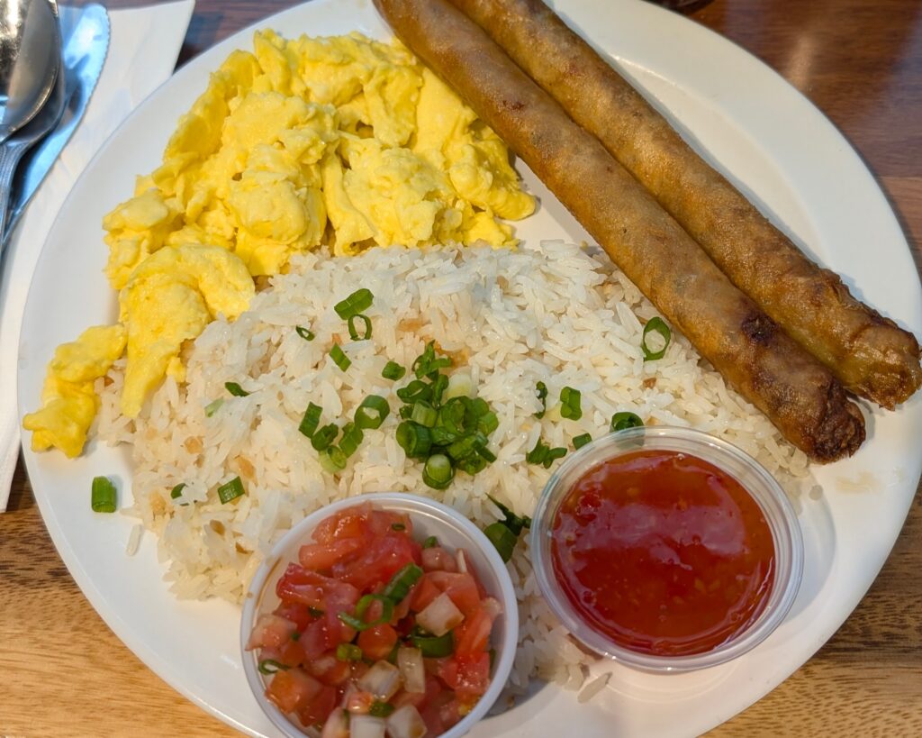 Tuesday morning, Patrick got up well before I did, so he ventured out early to walk around the city. I got my shit together and met up with him at this little cafe called Ludi’s, at which I got breakfast lumpia, which came with the best and most “don’t breathe on anyone for at least an hour” garlic rice I have ever experienced in my life. It was lifechanging, and now I want this for breakfast every day.