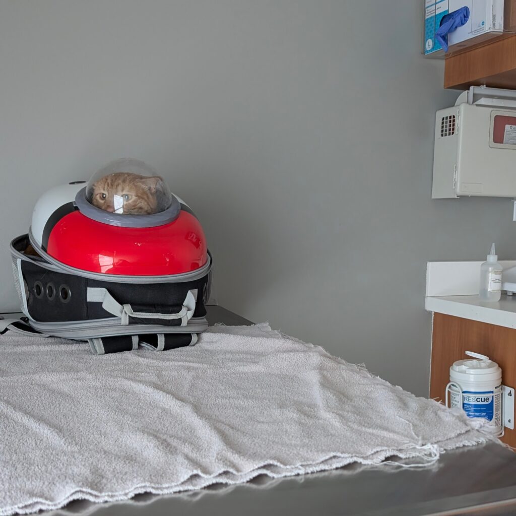 Last Wednesday he started doing the straining thing again and our vet couldn’t get him in, so they recommended we take him to the emergency vet. So we did.